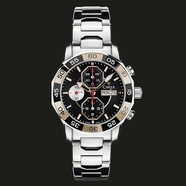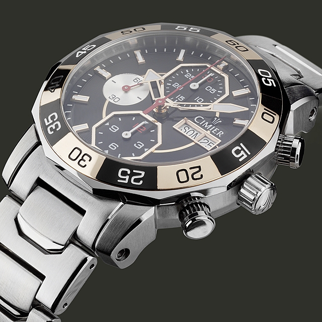 Chronograf, ukazovateľ dátumu, hodina, minúta, malá sekundovka
