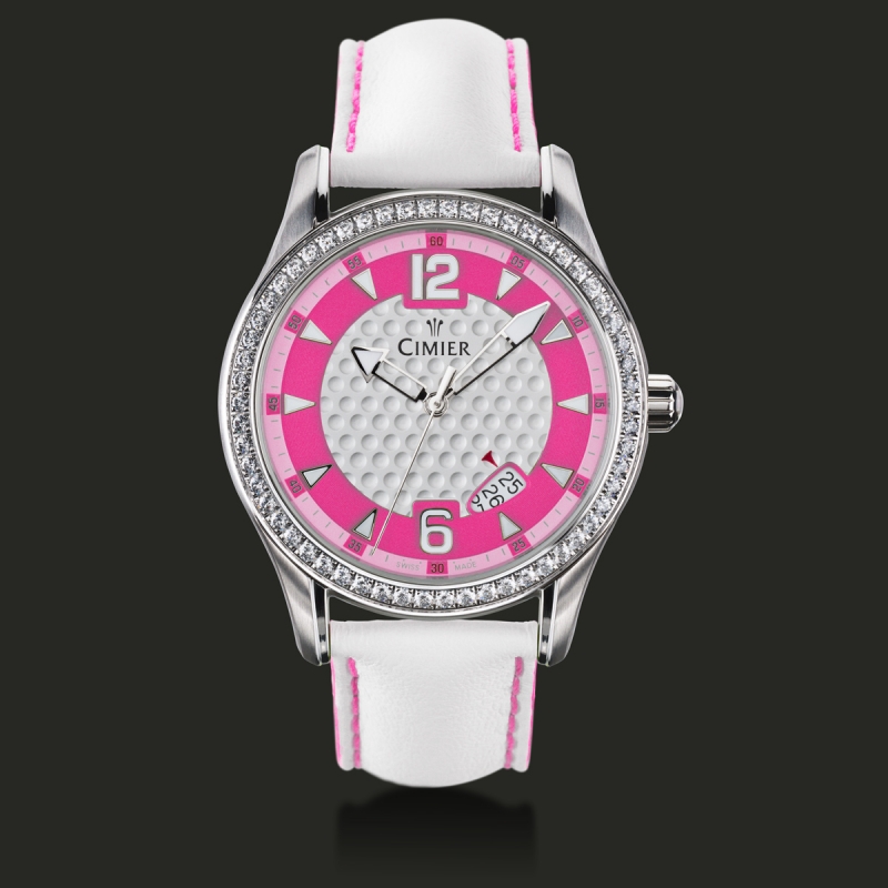Hodinky pre štýlovo upravenú golfistku. Elegantné ako golfový švih švajčiarskej profesionálnej golfistky Caroline Rominger (Ženská profesionálna golfová asociácia LPGA) - chronometer spájajúci športovosť a energiu, žiarivý ako vystúpenie topmodelky, vďaka energetickému sklu sa budete cítiť akoby vás zaplavila extra dávka šťastia. Golfistické hodinky Birdie v sebe spájajú všetky aspekty, sú špeciálne navrhnuté pre štýlovo upravenú golfistku. Zaručene pritiahnu obdivné pohľady, aj ak drive nemá vždy dokonalú dráhu a golfová loptička sa do jamky nedostane hneď prvým puttom.